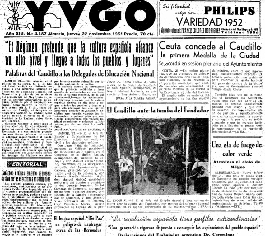 (‘Yugo’, jueves, 22 de noviembre de 1951, página 2)