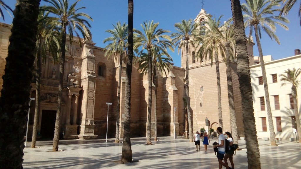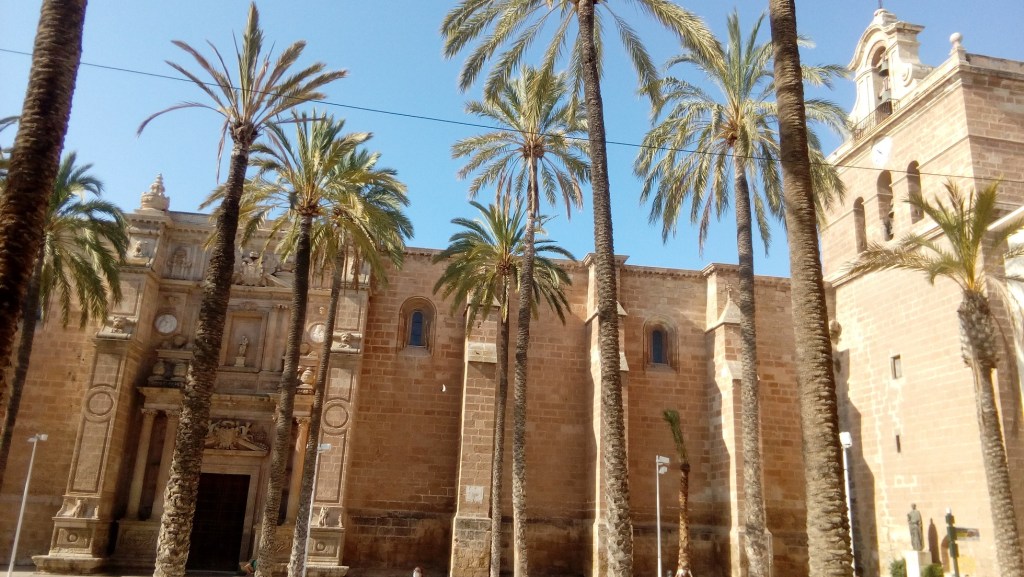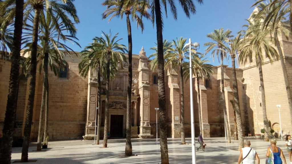 NOTA.- En los años 70 del pasado siglo XX, la plaza de la Catedral de Almería, fue escenario del rodaje de la película norteamericana ‘Patton‘, si bien, su fisonomía era muy diferente a la actual, ya que desde entonces ha sufrido diferentes modificaciones. La actual plaza fue remodelada entre 1999 y 2000 por los arquitectos Alberto Campo y Modesto Sánchez. Hace 20 años ya suscitó debate entre la ciudadanía por perder el espacio urbano el valor de ser encuentro para los almerienses, convirtiéndose en un lugar que da más realce y protagonismo a la portada principal de la Catedral de la Encarnación y edificios de interés que la rodea, como el Palacio Episcopal. En ella, tienen lugar diferentes acontecimientos socioculturales de la vida de la ciudad. Al pie de la torre se sitúa la estatua en bronce de Diego Ventaja, obispo de Almería martirizado, que fue beatificado en Roma por Juan Pablo II en 1993. La talla escultórica fue realizada en la posguerra por el escultor Pérez Comendador. La fuente que había en la plaza, con un especial encanto, también desapareció. Posteriormente, una reproducción en mármol se colocó en las cercanías, concretamente en la plaza Granero, donde permanece.