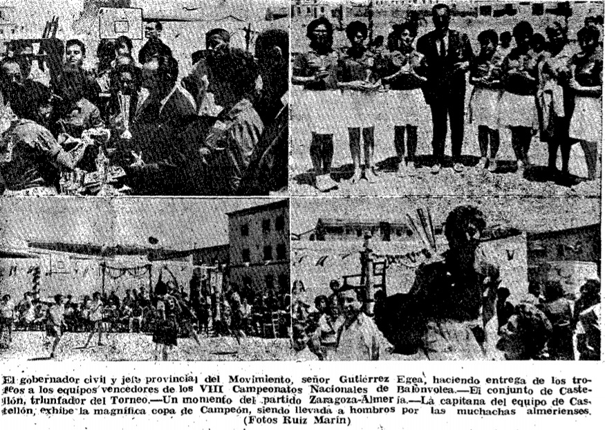 Un año después, los días 20 y 21 de mayo de 1961, en las pistas de Sección Femenina de nuestra capital, donde hoy se alza el Museo Arqueológico de Almería, se disputaron los VIII Campeonatos de España de voleibol de Sección Femenina. Almería se clasificó cuarto, por detrás de Castellón, Soria y Zaragoza.