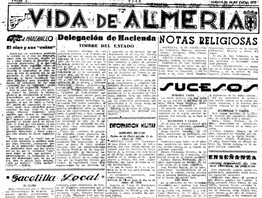 NOTA.- El domingo anterior al «Bajo el Manzanillo«, 13 de enero de 1952, los cines de Almería proyectaron las siguientes películas, siempre después del NO-DO núm. 468 A y B: