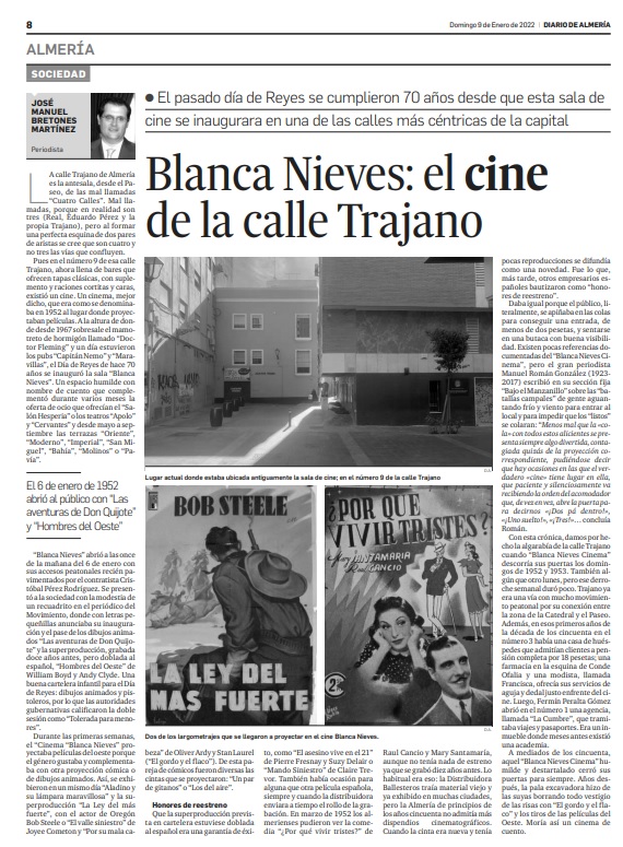 Blanca Nieves: el cine de la calle Trajano (José Manuel Bretones. Diario de Almería. 9 de enero de 2022)