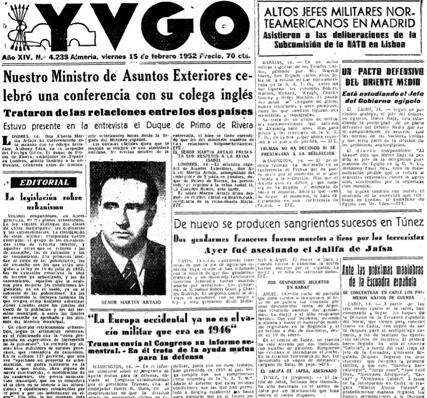 (‘Yugo’, viernes, 15 de febrero de 1952, página 2)