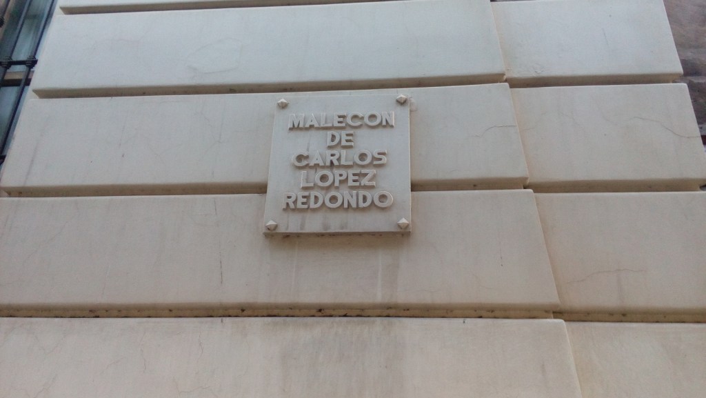 El nombre de Malecón Carlos López Redondo, aún figura rotulado en la fachada trasera del Instituto ‘Celia Viñas’. 26 de enero de 2021.- Foto JOMARO
