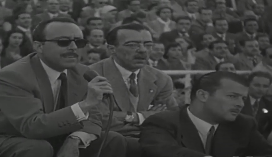 NOTAS.- En la fotografía de portada, César, con Segarra a su derecha y Biosca a la izquierda, pasea la Copa por el césped de Chamartín, donde el Barcelona acababa de superar al Valencia en la prórroga por 4 goles a 2. Era el 25 de mayo de 1952, partido que fue seguido en toda España por los aficionados congregados en torno a los aparatos de radio para seguir la retransmisión del partido. La voz la puso Matías Prats. Almería no iba a ser menos y mereció hasta la columna de ‘Bajo el Manzanillo‘. La fotografía es de la Agencia EFE. En el vídeo de arriba, reportaje sin voz del partido realizado por NODO.