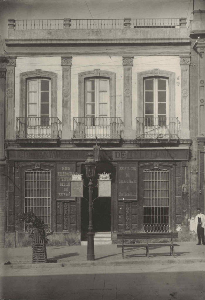 Sede de Teléfonos, Red Telefónica Interurbana del Sur de España y uno de los bancos existentes en el Paseo del Príncipe (Almería), núm. 38, en 1915. Fuente revista MUSEOS DE TERQUE