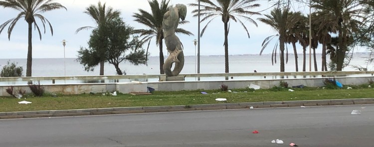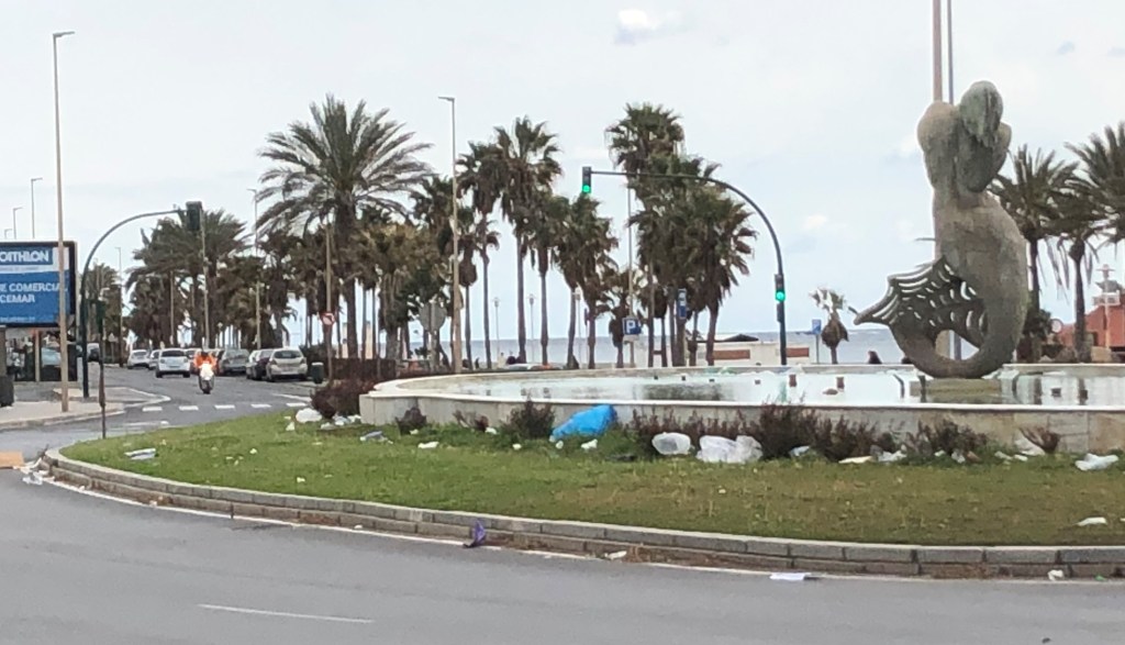Uno de los pocos males molestos de la climatología almeriense son los fuertes vientos. Y las consecuencias, a veces, se convierten en un problema de suciedad y de medio ambiente, que si no afrontamos con un compromiso personal entre todos, incluidos ciudadanos y usuarios, nos puede desbordar. Y, es lo que pasa con demasiada frecuencia, como este 20 de marzo de 2021, recién entrada la Primavera, en esta Almería nuestra. A lo largo de toda la mañana, en el antiguo recinto ferial de la avenida Mediterráneo, detrás del Auditorio Municipal Maestro Padilla, se ha celebrado el tradicional mercadillo de los sábados, el que más vendedores y compradores atrae de la ciudad de los que tienen lugar semanalmente. Hoy ha sido un día de esos en que el viento ha soplado de lo lindo y más en la costa, a orillas de la bahía. Por lo que las bolsas de plástico han volado literalmente en la barriada del Zapillo, zonas de la Térmica, El Palmeral, Auditorio, Vega de Acá, Nueva Almería, alrededores y, lo que quizás es peor, han ido a parar al mar.
