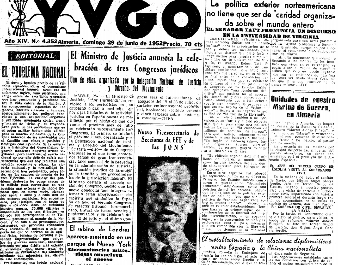 (‘Yugo’, domingo, 29 de junio de 1952, página 2)
