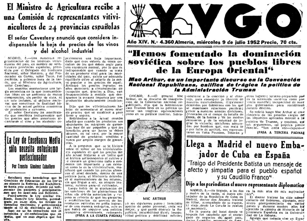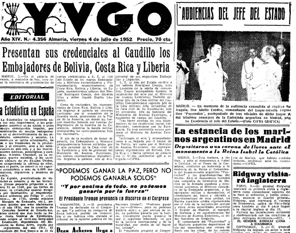 (‘Yugo’, miércoles, 9 de julio de 1952, página 2)
