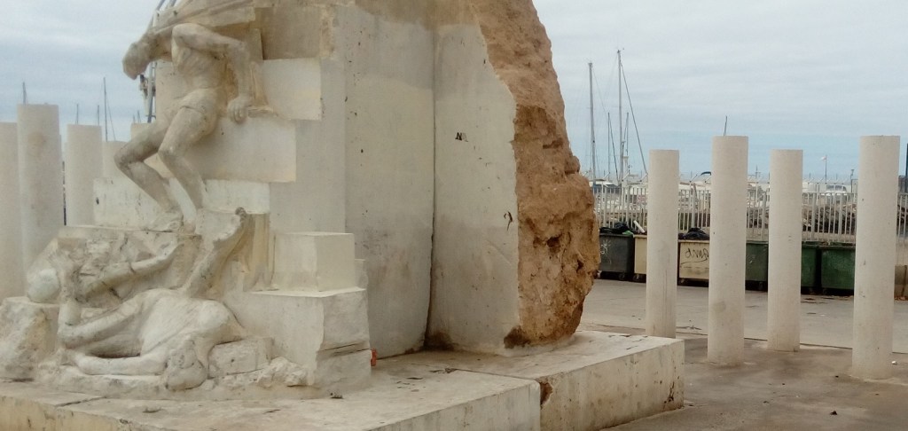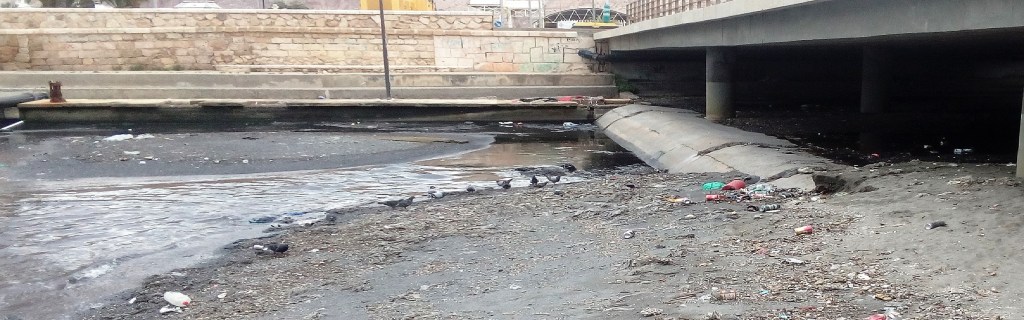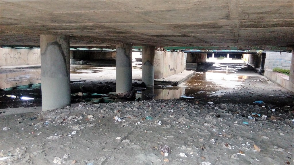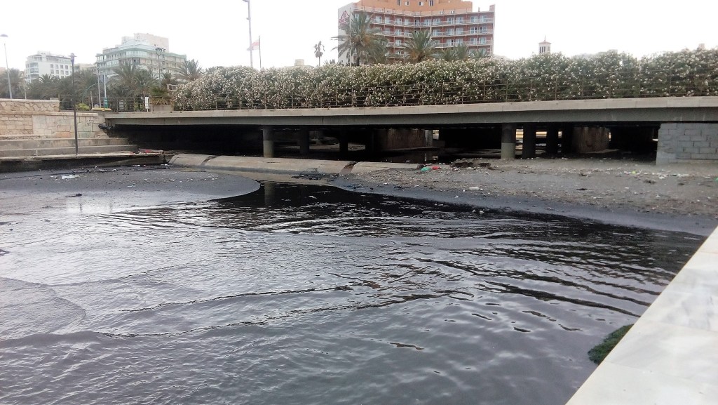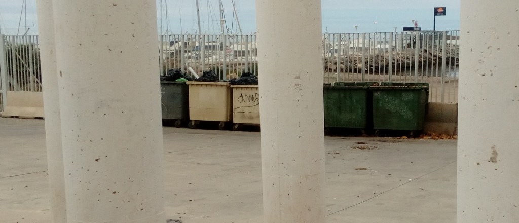 Algo impropio de una ciudad del siglo XXI: insectos de todo tipo entre la arena y en el aire, algún ratón de considerables dimensiones más hacia el cauce de la rambla, numerosas palomas tratando de echarse algo al buche, un trío de gaviotas a la expectativa, peces pequeños en gran cantidad, esqueletos de algunas especies marinas, basura mezclada con desechos y plásticos en abundancia, y las aguas y restos fecales (huelga nombrar algunos, pero destacan compresas, mascarillas, toallitas, etc.). El mal olor era insoportable y la imagen lamentable. Al bajar la marea, las aguas quedan acumuladas como en una laguna fétida, entre los tres riachuelos fecales y la isleta de fango que se forma en la misma desembocadura con el mar.