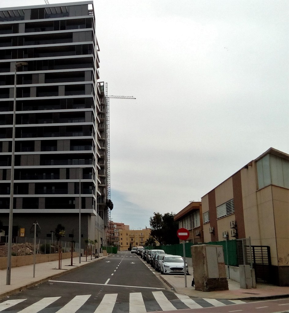 El Residencial «Suncrest 32″, que es el que ha posibilitado la construcción de la nueva vía, a juzgar por los trabajos de rotulación que se llevan a cabo en la torre más cercana a la rotonda de Las Almadrabillas, está prácticamente finalizado, muy cerca de abrir sus puertas y dar albergue a sus propietarios. Tanto el portal de acceso a las viviendas como el parking en las plantas sótano están debidamente señalizados y preparados para recibir a los primeros residentes y sus vehículos. Y, claro, también a quienes se acerquen a hacer la compra al ‘Mercadona‘ que se abrirá en la planta baja y cuya entrada al aparcamiento está rotulada por la calle Abogado de Oficio.