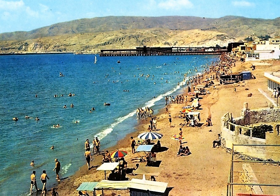 NOTA.- La fotografía destacada, de portada, corresponde al balneario Diana, al fondo se ven las instalaciones del cable de mineral francés, playa que la noche de san Juan registraba un «lleno de bandera» para lavarse los ojos en el mar y después irse de serenata. Eran las veladas de los 23 de junio a mediados de los años 50, entre 1952 y 1957, todo muy diferente a cómo es ahora. La instantánea es de los hermanos Paniagua Porras y corresponde a la colección ‘Baños de mar’ de los Museos de Terque.