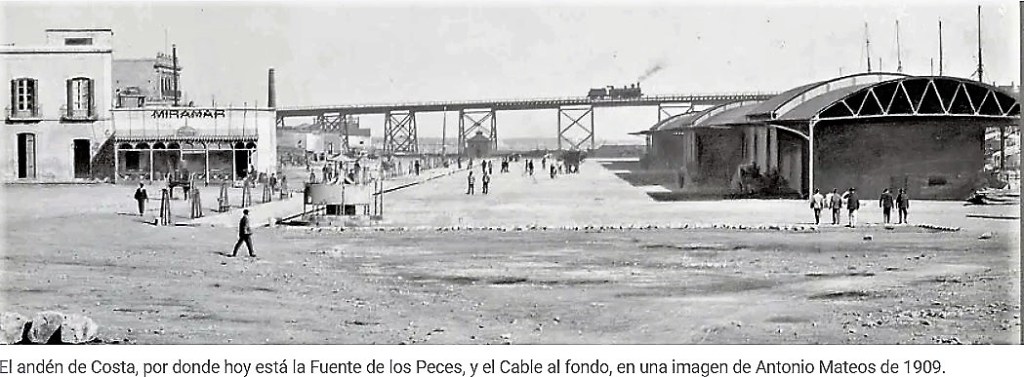 NOTA.- Foto de portada, destacada. Puerto de Almería en 1907, la zona señalada es el Andén de Costa, donde se levantó el campo que sería el marco del primer partido de ‘foot – ball’ celebrado en Almería, el 23 de agosto de 1907, viernes. Eran los cimientos del balompié almeriense. La fotografía, donde se observa el Cable Inglés, de reciente construcción, y la bahía hasta la desembocadura del río Andarax, corresponde a los fondos de la Biblioteca Digital de la Diputación Provincial de Almería.