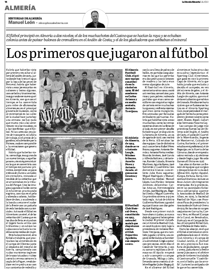 Los primeros que en Almería jugaron al foot-ball (La Voz de Almería, 5 de junio de 2022. Por Manuel León)