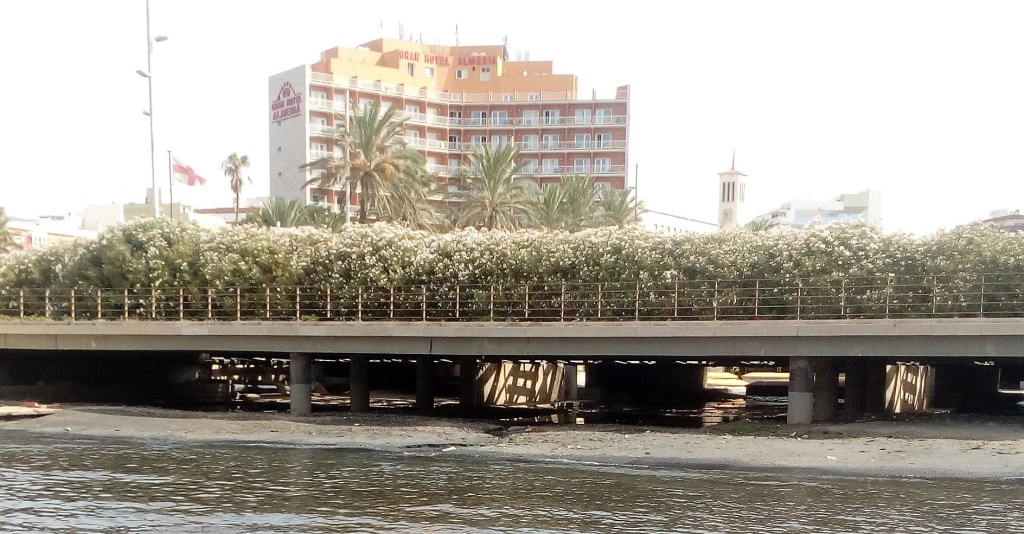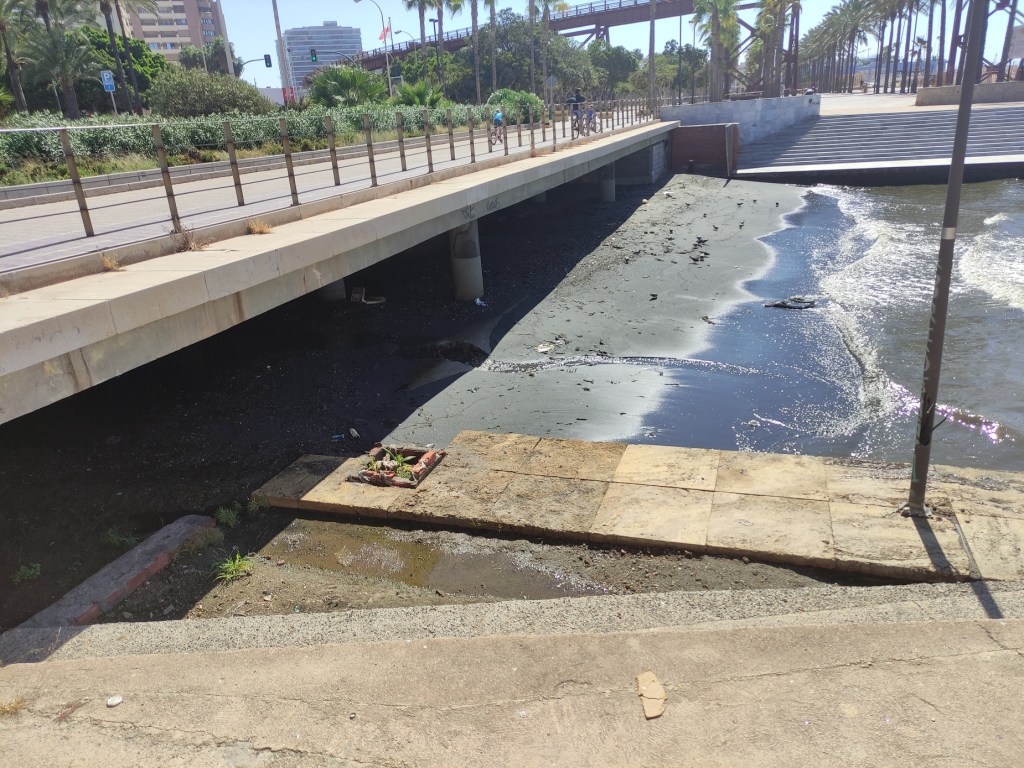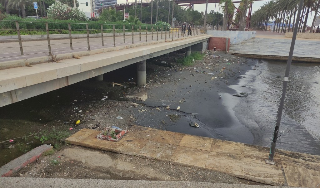 Las imágenes valen más que mil palabras. Y ahí están para dar fe de ello. Los tres riachuelos que vertían agua fecal, justo debajo del puente por donde pasaba el tren, y por donde ahora lo hacen ciudadanos que en su mayoría van buscando zonas saludables, trayecto final de la Rambla, han desaparecido para dar lugar a un auténtico río. Con un caudal abundante y sin cesar no para de llevar agua pestilente hasta el mar. Ni que decir el pestazo insoportable con los 32 grados de temperatura de esta mañana, a las 11 h. Es una situación que estamos hartos de denunciar y del que la prensa local se ha hecho suficiente eco como para que las autoridades competentes hubieran ya tomado medidas drásticas para evitar este desastre en pleno siglo XXI en el corazón de la ciudad. Llamamos al turismo -este verano hay muy buenas perspectivas-, pero los mismos que montan esas campañas de captación de visitantes, lo espantan con estas acciones tercermundistas.