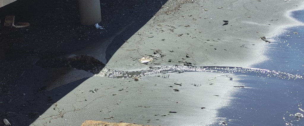 NOTA.- Foto de portada, destacada. La desembocadura de la Rambla este 10 de julio de 2021. Los tres riachuelos de aguas fecales han dado lugar a un río con un caudal abundante e incesante que vierte al mar, con los problemas de insalubridad que conlleva. Si a eso unimos el geiser, un amasijo de hierros oxidados; y, el hecho de que la Ballena de Gabriel se nos cae trozo a trozo, tenemos una imagen tercermundista en pleno corazón de la ciudad.- Foto JOMARO