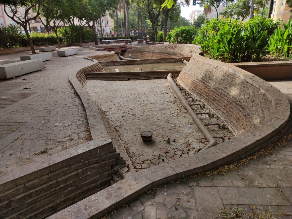 La Fuente de los ‘102 pueblos’ languidece al final de la Rambla