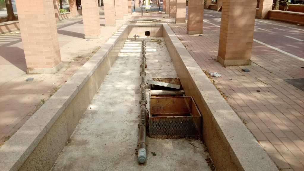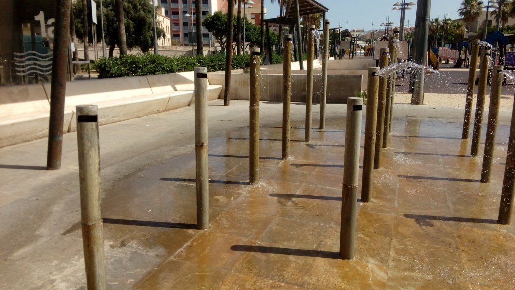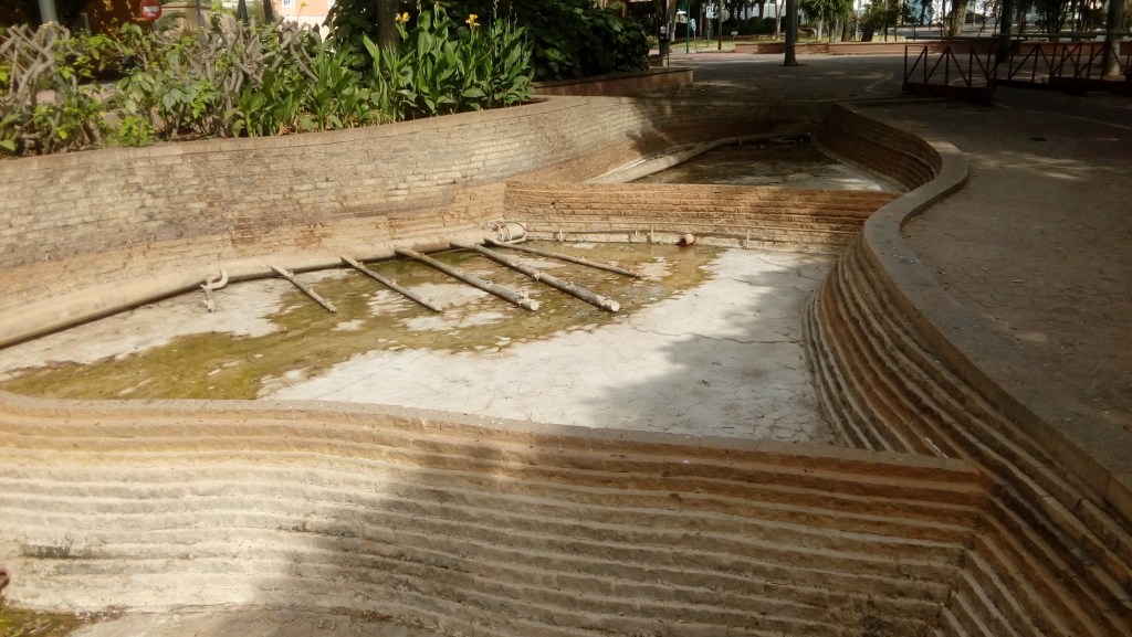 A todo lo anterior hay que añadir la insoportable situación, ya denunciada en otros post de esta web, de la desembocadura de la rambla en el Cable Inglés: un río de agua fecal vertiendo al mar de forma continuada, un géiser convertido en un amasijo de hierros, y la pavimentación, recién estrenada hace un par de años, de la Ballena de Gabriel cayéndose literalmente a trozos. Las grandes losas de mármol descansar en el fondo del mar, en la misma desembocadura. Claro que el espectáculo, unos metros antes, en la misma rambla, en su tramo final, donde la fuente de los 102 pueblos, es también para echarse a llorar por el abandono, la dejadez, que dan lugar a un cuadro desolador y a un pestazo insoportable.