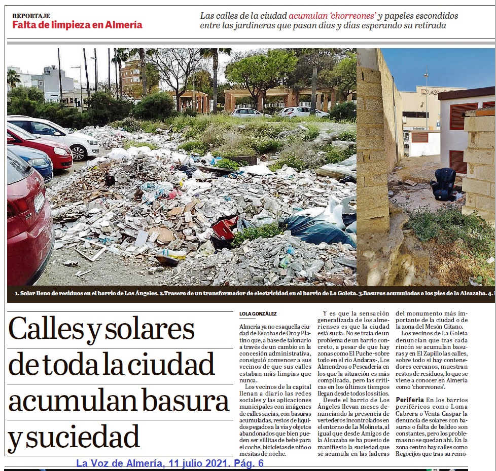 Desde el principio de las dos ramblas, en la confluencia de las carreteras de Granada con la de Ronda, la de Amatisteros, y desde la autovía, la de Belén, hasta la desembocadura en el Cable Inglés, nos encontramos con un panorama de abandono y dejadez más que palpables. Son escenas dantescas, en algunas zonas tercermundistas, como demuestran las imágenes que ofrecemos. Animales muertos, excrementos de canes y hasta de personas, suciedad maloliente, mugre que no salta más que con una limpieza exhaustiva y a fondo, basuras que se acumulan sin que se retiren, papeleras llenas…fuentes sin funcionar o a medio rendimiento, algunas con su maquinaria a la intemperie y oxidándose, acumulando residuos, plásticos y marranerías…zonas ajardinadas secas, árboles que no se reponen…mobiliario que se destroza y deteriora sin que nadie haga nada…la pavimentación y enlosado resquebrajados o levantados sin remedio, deteriorado y con partes destrozadas que representan un grave peligro para quienes transitan…cables sueltos, focos de iluminación sin funcionar desde tiempo inmemorial, algunos cegados con cemento…zonas infantiles y deportivas deterioradas faltándole elementos (canastas de baloncesto sin aro, sin ir más lejos)..monumentos, como el de la Caridad, que precisan de una actuación puntual para su conservación, ya que es objeto de las inclemencias del tiempo…Un cúmulo tal de despropósitos, que, o se acomete un plan integral en las dos ramblas, o mucho nos tememos que, a no tardar, haya que lamentar daños irreparables.