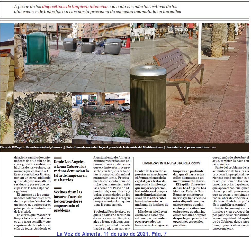 #BajoelManzanillo, en un paseo dominical por las ramblas de Belén y Amatisteros, pone al descubierto la suciedad, dejadez y abandono que sufre este espacio urbano tan especial para la ciudadanía. Un cuadro desolador del que deberíamos avergonzarnos todos y que precisa de una actuación eficaz, global y urgente. Un lugar vital para los almerienses merece cuidados y esmero en el mantenimiento y limpieza. He aquí 90 muestras de lo que decimos.