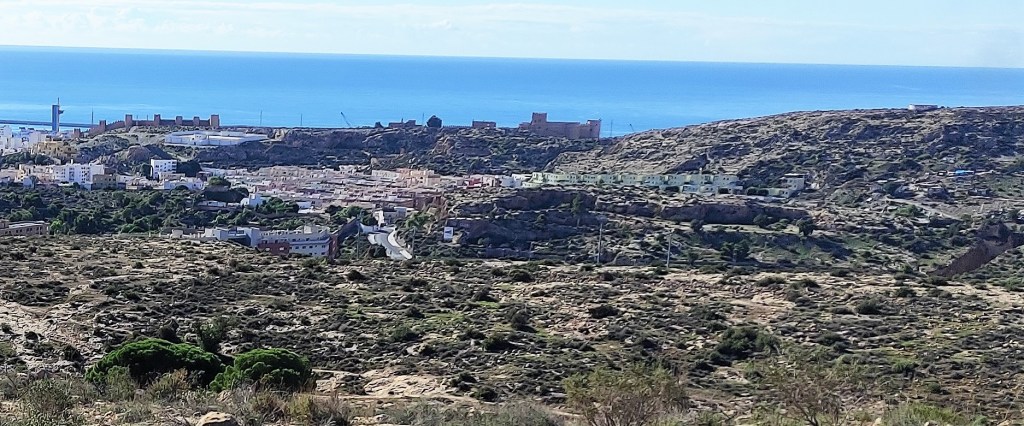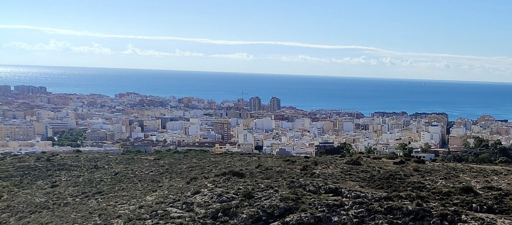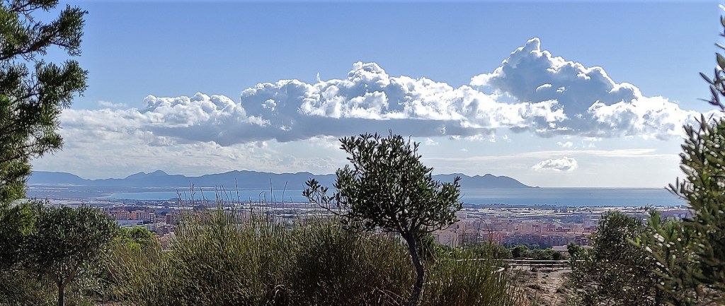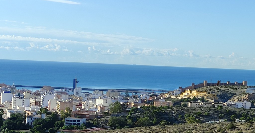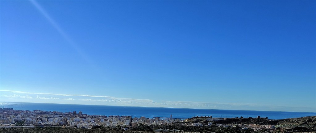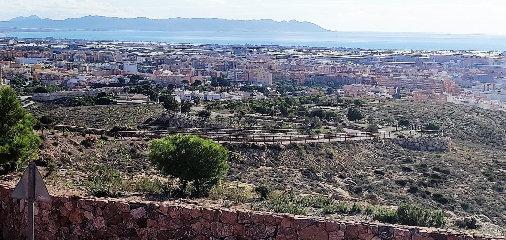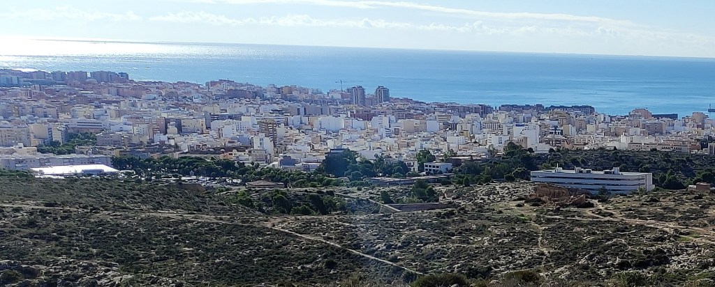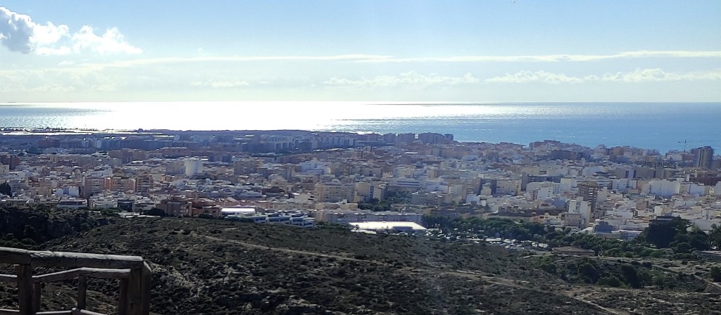 Las fotografías, captadas con el móvil en esta semana, jueves y viernes, días 4 y 5 de noviembre de 2021, nos dan idea de la belleza de la que hablamos y que se observa desde los diferentes niveles del sendero e, incluso, desde el mismo camino de La Molineta. Todo de un vistazo y a lo grande: la muralla de Jairán, parte del conjunto monumental de la Alcazaba y el Cerro de San Cristóbal, el puerto, el faro, la desembocadura del río Andarax, la torre de Salvamento Marítimo, el Cable Inglés, toda la bahía completa, el Cabo de Gata y su orografía, las sierras de Alhamilla y de Gádor; sin dejar a un lado todas las barriadas y lugares destacados de la ciudad como la Plaza de Toros, los edificios de La Térmica, la Bola Azul, el Estadio Municipal de los Juegos Mediterráneos, Cabo de Gata pueblo, La Fabriquilla, El Toyo, Retamar, Hospital Universitario Torrecárdenas, sin dejar atrás los barrios más cercanos de Los Ángeles, Colonia Araceli, Piedras Redondas, Los Almendros, Plaza de Toros, Quemadero, Fuentecica, etc.