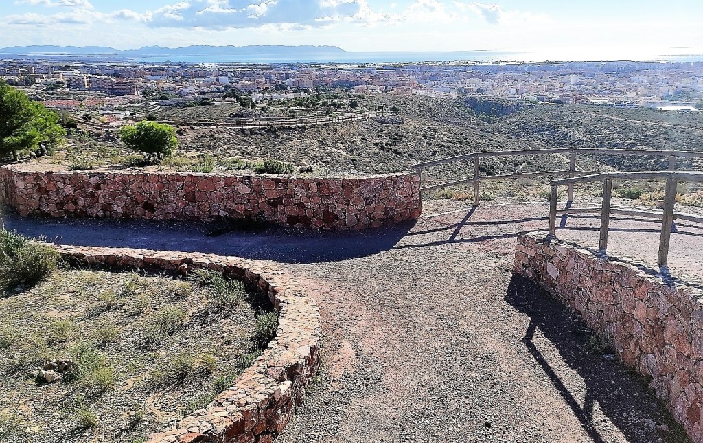Hay lugares privilegiados en Almería, que permiten obtener panorámicas únicas, aliadas con nuestra luminosidad y la benignidad del clima, como en pocas ciudades. A pesar del abandono en que se encuentra y que ya en enero de 2021 denunciamos (ver «El Cordel de la Campita necesita más atención para superar la década de abandono«), el sendero de La Molineta, es uno de esos balcones, que en cualquier dirección por donde mires, descubres de forma espectacular la belleza de la Almería más diversa que se contempla desde sus miradores o diferentes recintos: la urbana, la del mar, su cielo o la montaña que la rodea. Incluso se divisa parte del término municipal de Níjar. Con un poco de más atención y mimo por parte de las administraciones públicas, Junta de Andalucía y Ayuntamiento de Almería, el mirador sería un lugar sin parangón para disfrutarlo en su plenitud.