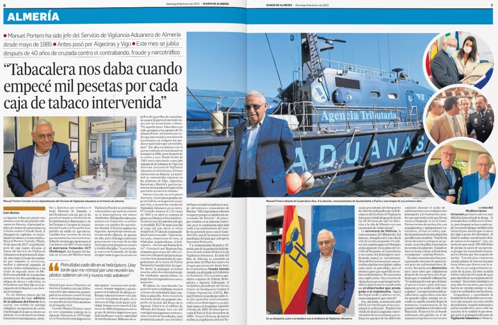 Manuel Portero: «Tabacalera nos daba mil pesetas por cada caja de tabaco intervenida» (Por Iván Gómez, en Diario de Almería, 9 de enero de 2022)