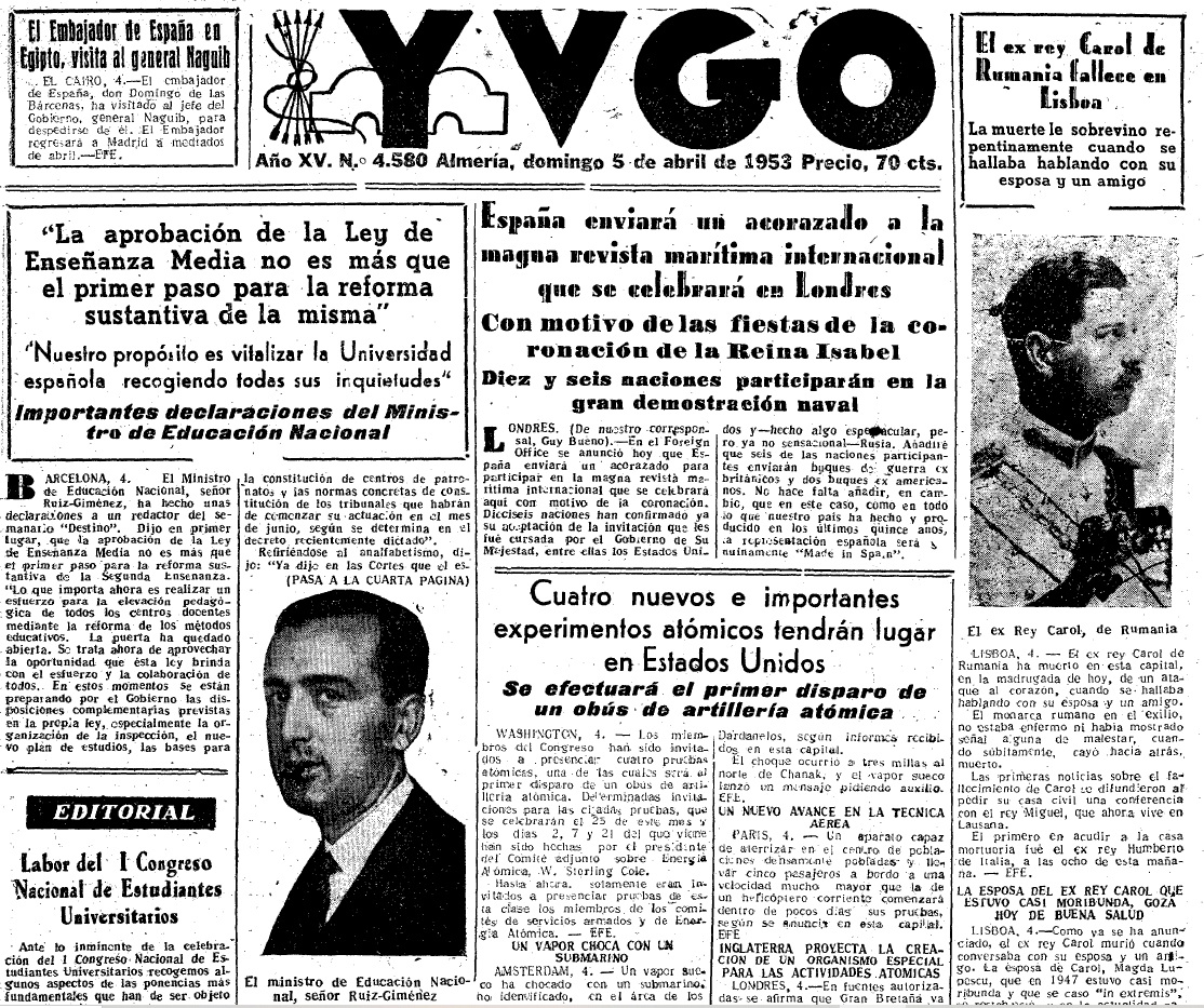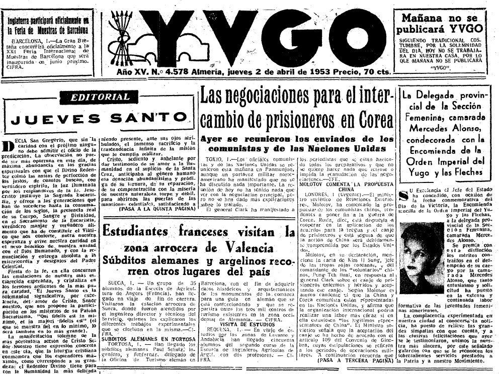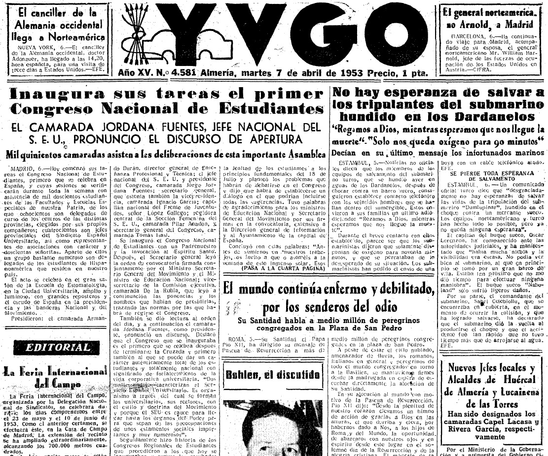 (‘Yugo’, martes, 7 de abril de 1953, página 2)