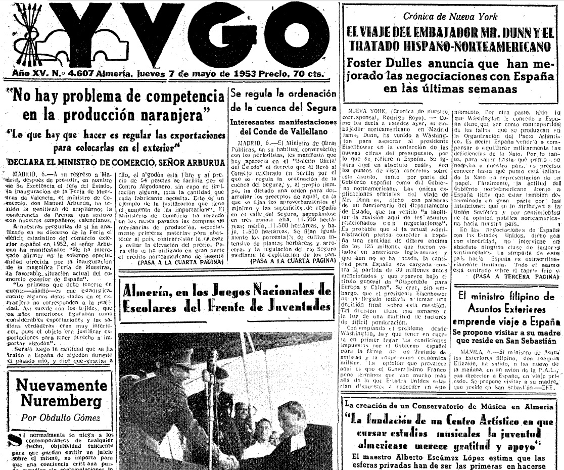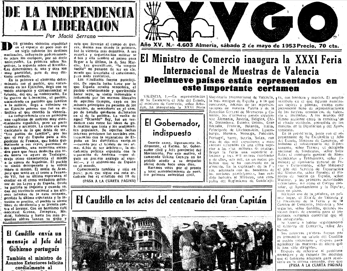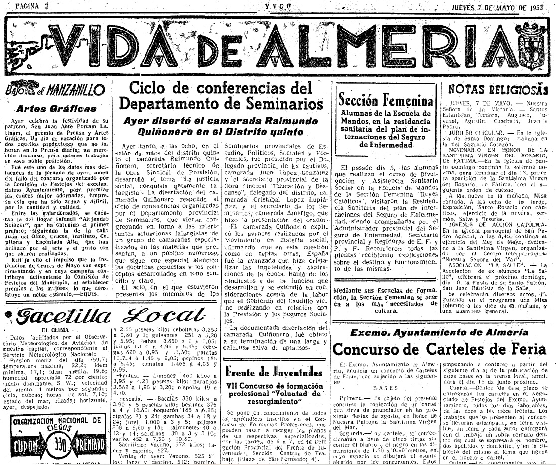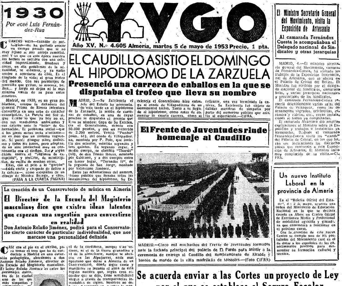 NOTA.- La fotografía destacada, de portada, cuyo autor es RUIZ MARÍN, corresponde a la fiesta de la cruz instalada en el Instituto Nacional de Enseñanza Media de Almería, en 1955. Fue publicada por el diario ‘Yugo’.