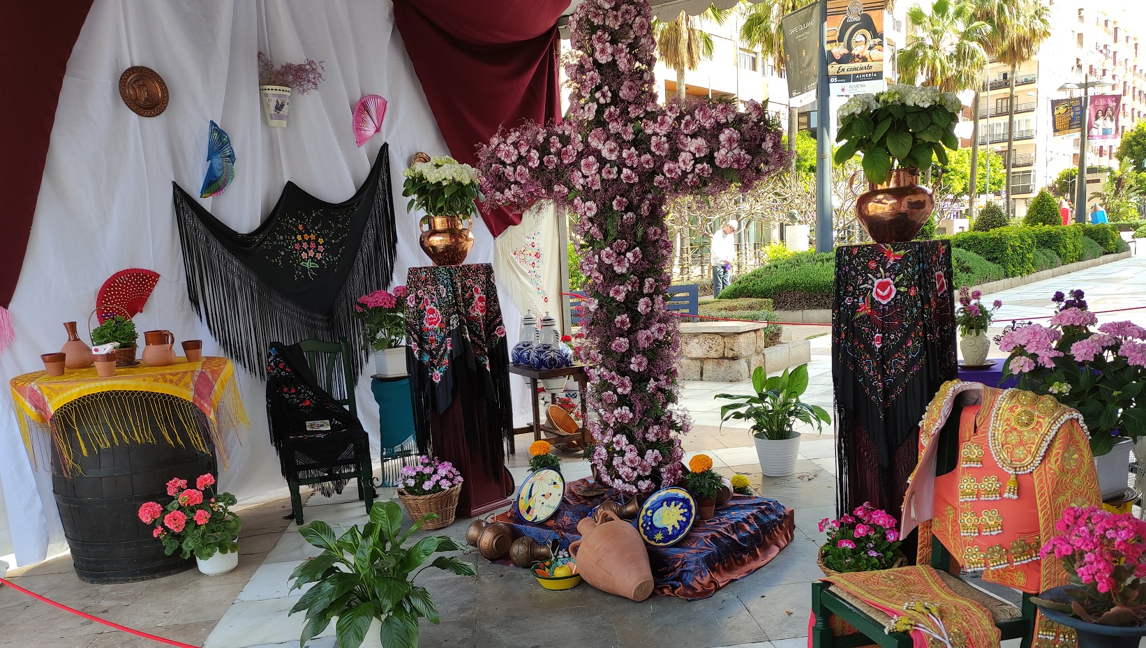 Nota destacada también lo es la Cruz que ha sido instalada en la calle Juan del Olmo, simulando un patio sevillano, logrado con mucho gusto y adornado con bonita iluminación, la cual se vio concurridísima, siendo numeroso el público que acudió a visitarla y hacerse partícipe de la fiesta organizada con tal motivo.