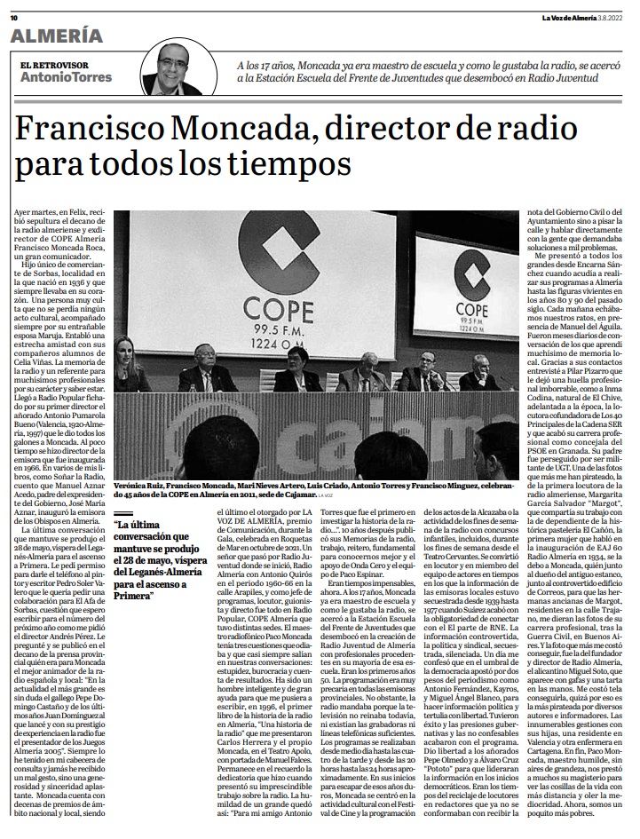 Un comentario en “Adiós a Francisco Moncada Roca, decano de los periodistas radiofónicos almerienses”