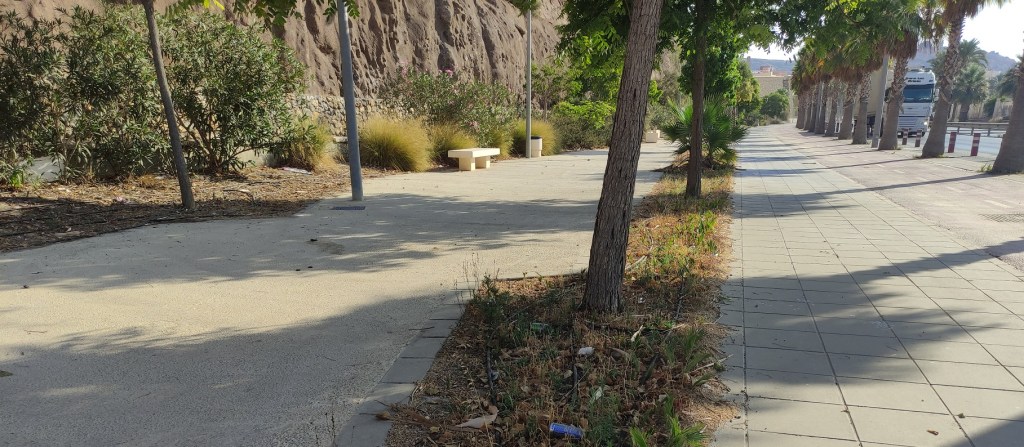 Todo es un desastre en esta Almería nuestra en los detalles comentados. A las denuncias anteriores de la ramblas de Belén y Amatisteros o de la de Iniesta, u otras zonas o espacio de la capital, hoy agregamos la del parque de acceso a la ciudad por el túnel desde el que se divisa la Alcazaba. Sí, el de la entrada por Pescadería que no hace mucho se recuperó felizmente en lo referente a la infraestructura y la zona verde, una gestión que realizó magníficamente la Gerencia Municipal de Urbanismo del Ayuntamiento de Almería con un presupuesto muy considerable y un resultado óptimo. De la obra se encargó la empresa constructora Lirola, como aún indica la cartelería.