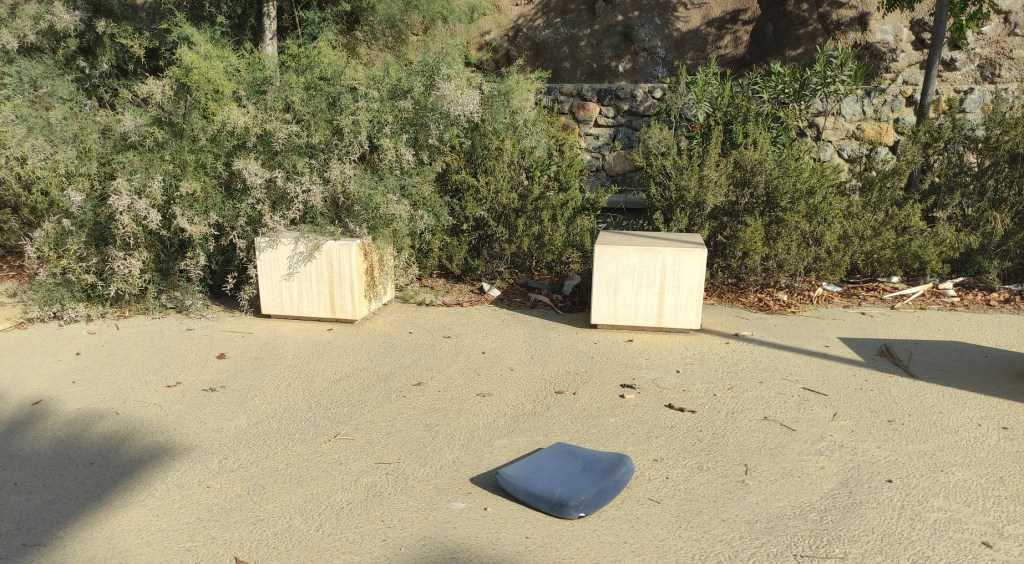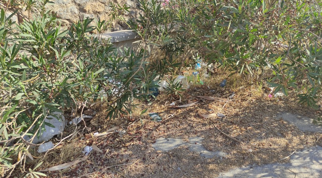 Pues bien, en los tres últimos años, el abandono ha sido tal que prácticamente el espacio es una cochambre. Inmundicias, suciedad acumulada de mucho tiempo, sin funcionar el estanque que se habilitó, plásticos, desechos, cartones, malos olores, insectos, dominan tanto el recinto para el ocio como la jardinería. Las plantaciones han desaparecido en muchos casos, los hierbajos crecen por todas partes…hay una dejadez palpable hojarasca acumulada, falta de limpieza y de desinfección. Hay gente que tiene allí sus almacenes secretos. Vamos, un despropósito.