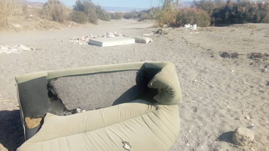 En septiembre de 2020, en ‘Bajo el Manzanillo‘, con el título de ‘No tenemos arreglo, somos unos puercos‘, denunciábamos que la limpieza a fondo del río acometida de forma efectiva y acertada por la Junta de Andalucía en mayo de ese año, se había visto empañada al volverse a depositar escombros, plásticos, cristales, muebles y otras lindezas, en el mismo cauce. Junto a la denuncia se pedían sanciones y mayor vigilancia de la zona, a ser posible por parte de la Policía Autonómica, al ser competencia de la Junta de Andalucía. La situación ha ido a peor y en enero de 2021 el Defensor del Pueblo actúa ante el regreso de la basura al Andarax. Se hizo eco de un reportaje de ‘Diario de Almería‘ e instaba a la Junta de Andalucía y al Ayuntamiento de Almería a adoptar medidas. En junio de 2021 la prensa, nuevamente ‘Diario de Almería‘, refleja la situación: «La basura se acumula en la zona del río Andarax que limpió la Junta. Vox pide cámaras para controlar los vertidos ilegales«.