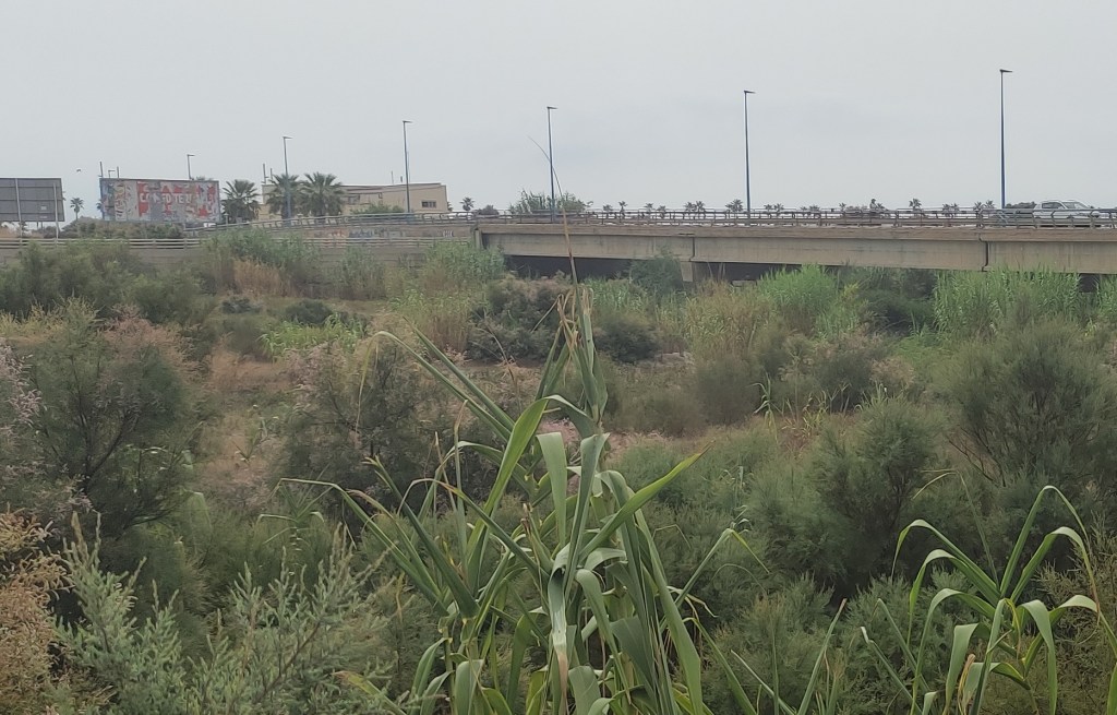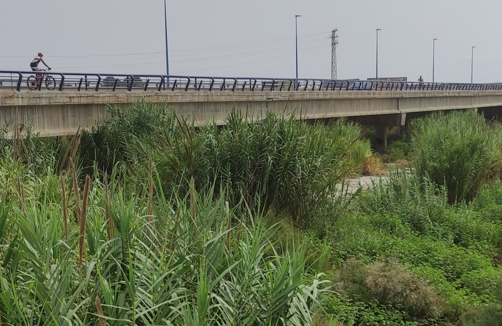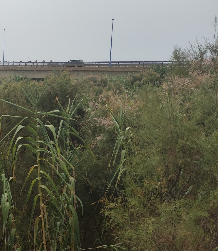 NOTA.– La fotografía destacada de portada pertenece a una parte del puente que une la avenida Cabo de Gata con la carretera a la Universidad, donde puede apreciarse la altura de la vegetación, que llega a cegar los ojos de la infraestructura. Está tomada desde el delta del río.- Foto JOMARO