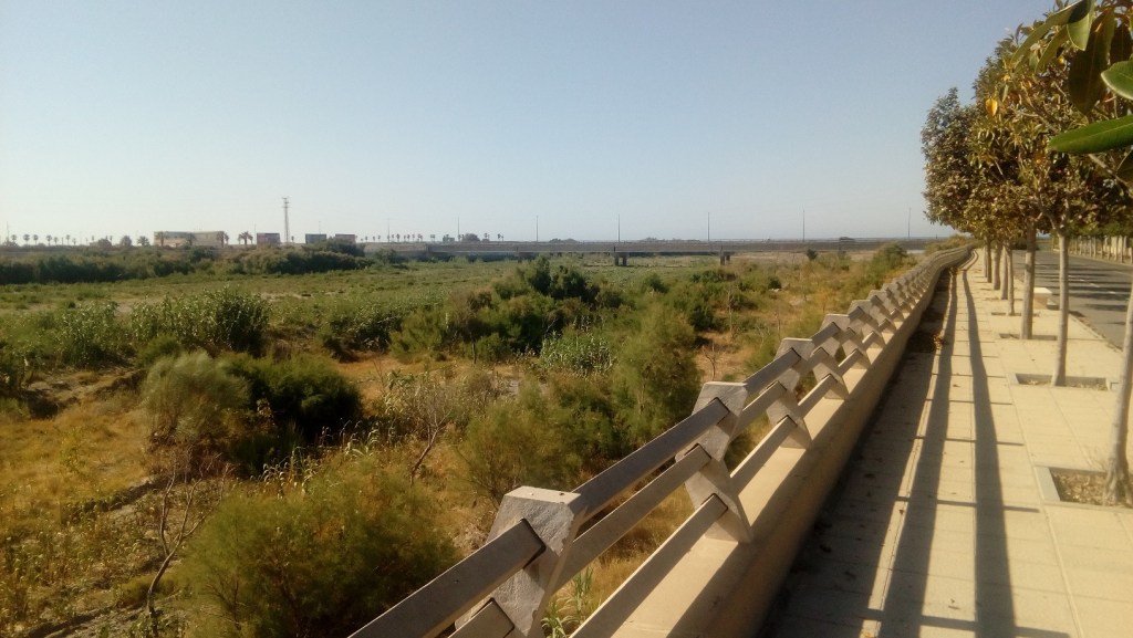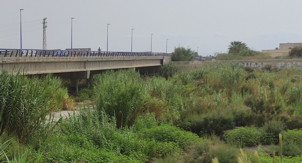 Los titulares de la prensa de los últimos días no paran de advertir lo que puede venir: «Temor en Almería a la gota fría –DANA, Depresión Aislada en Niveles Altos– por las altas temperaturas del agua. Las autoridades trabajan para minimizar los riesgos. Expertos avisan de que las tormentas serán más fuertes si se dan varias circunstancias» (‘Diario de Almería‘, 28 de agosto de 2022). Si las previsiones se cumplen podemos estar ante una situación muy delicada, ya que la vegetación, de forma salvaje, cubre prácticamente los ojos del puente que prolonga la avenida de Cabo de Gata camino de la Universidad de Almería. Una salida del río en todo su caudal pudiera causar daños irreparables cuando las aguas tomen camino del mar.