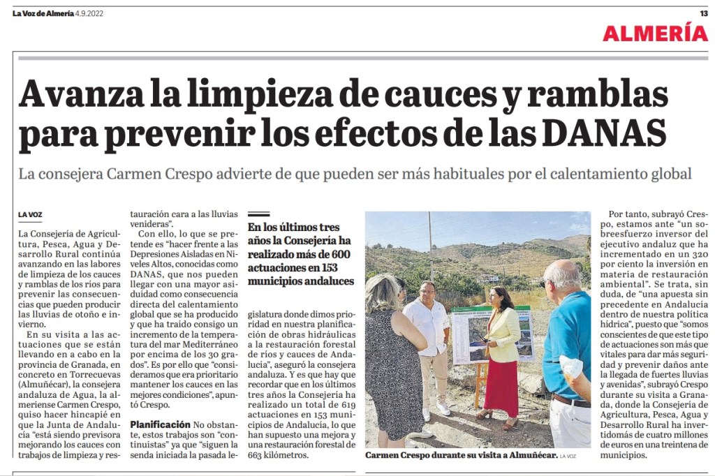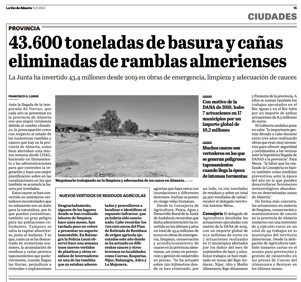 43.600 toneladas de basura y cañas eliminadas de ramblas almerienses. La Voz de Almería. 15 de septiembre de 2022.