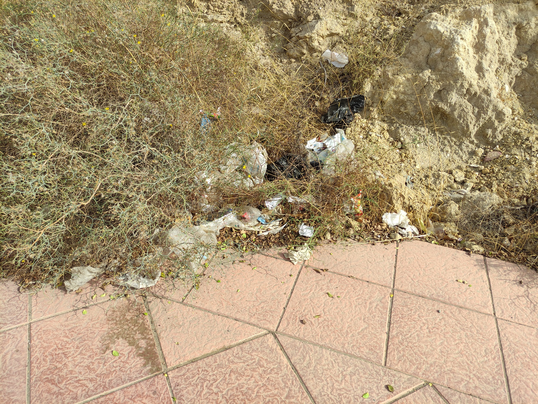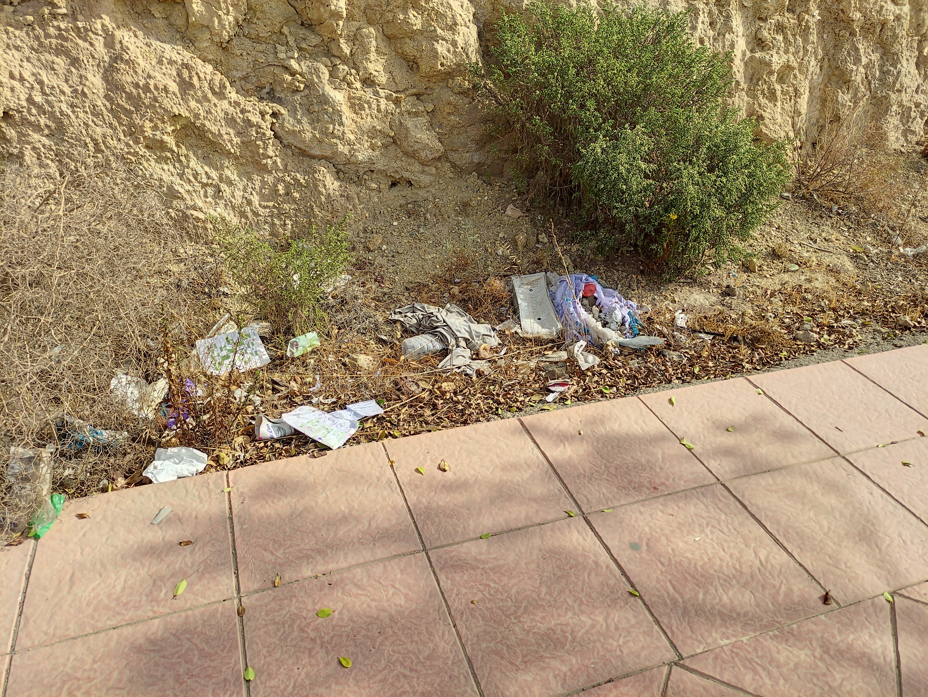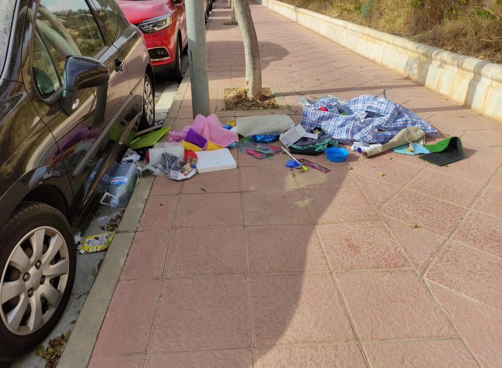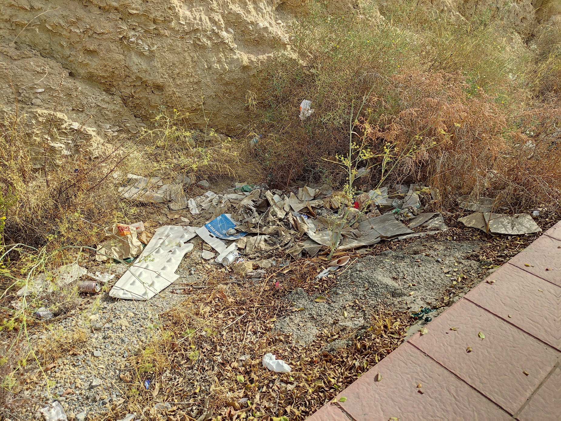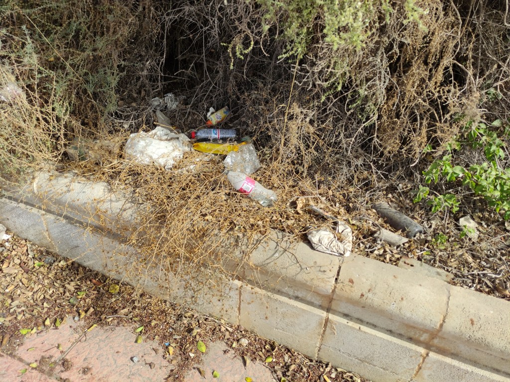 Un simple paseo, andando o en vehículo, por la avenida Torrecárdenas o la calle Hermanos Siret, hacen esquina, lindando con los aparcamientos y con algunos edificios del complejo hospitalario y diversos pisos que ya están habitados, nos da una idea de la dimensión de la suciedad almacenada entre maleza, sin control alguno, en la ladera del mismo cerro. Hay basura de cualquier tipo que pueda uno imaginarse, ya acumulada de hace tiempo, sobre todo objetos de plástico; residuos, prendas de vestir -hasta ropa interior-, edredones, colchonetas, mascarillas, vallas abandonadas, envases de cartón, etc. ¡Tremendo!