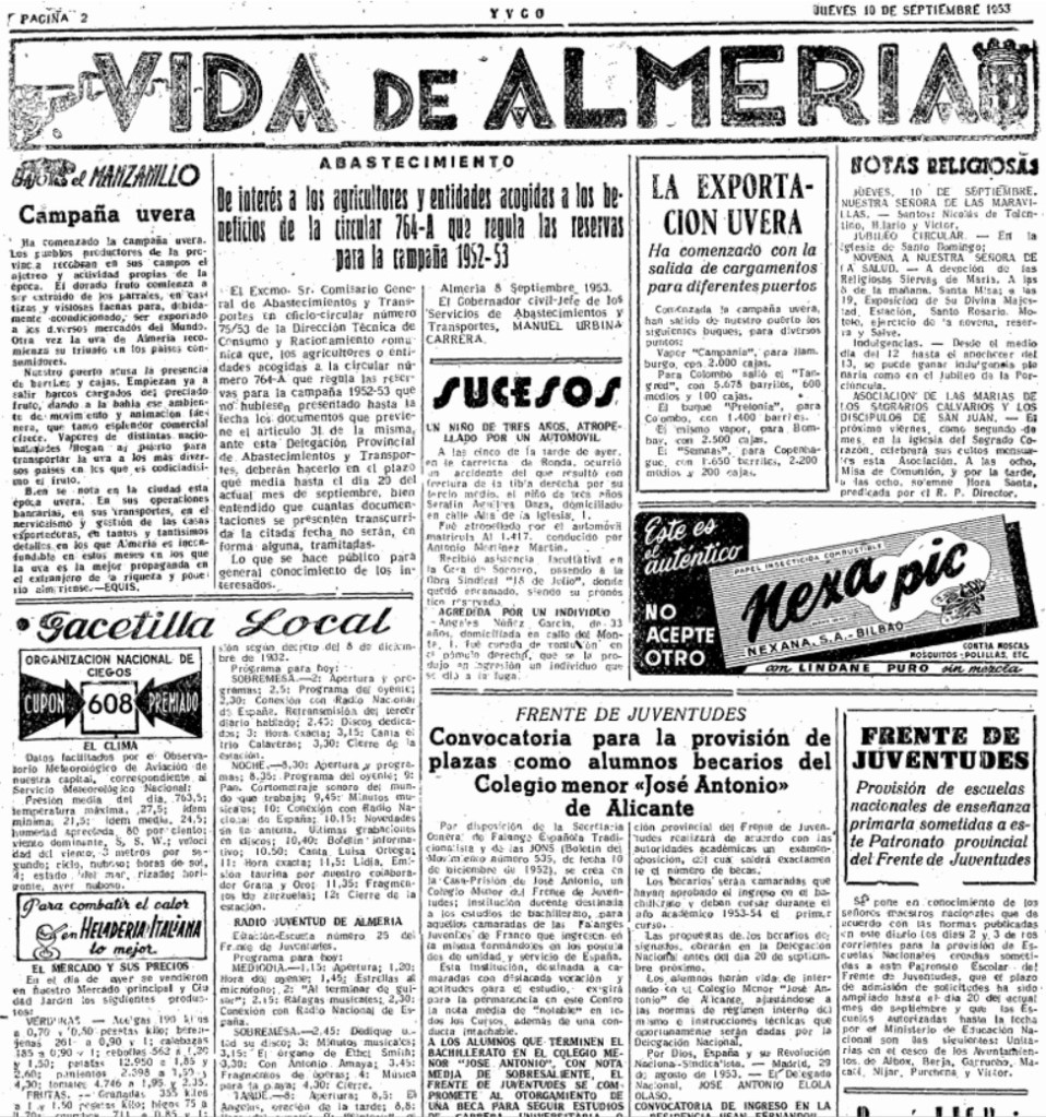 (‘Yugo’, jueves, 10 de septiembre de 1953, página 2)