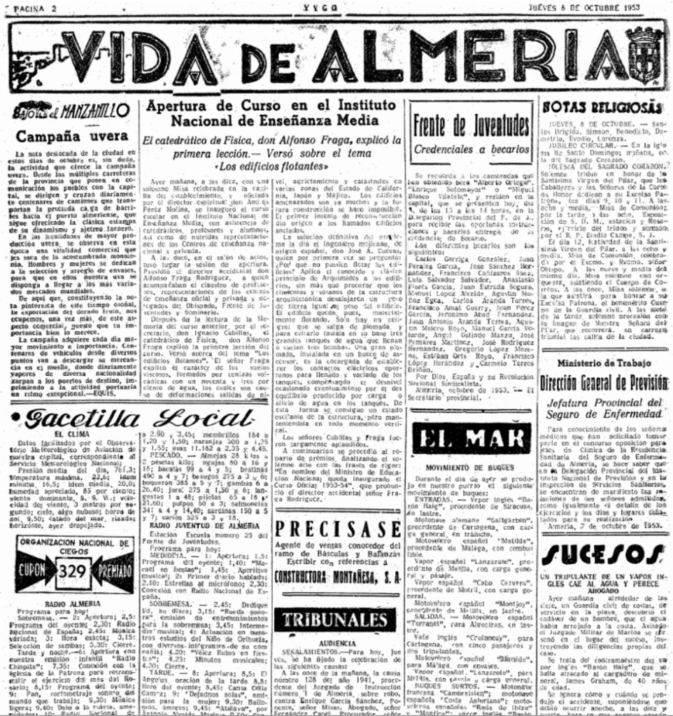 (‘Yugo’, jueves, 8 de octubre de 1953, página 2)
