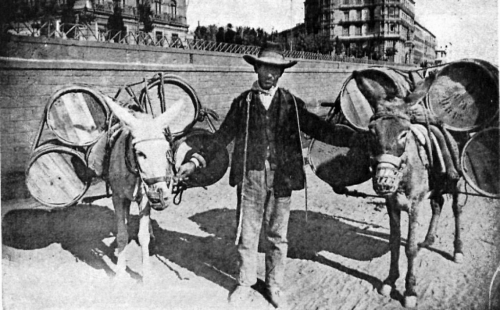 «La otra mercancía que daba el mayor movimiento al puerto era la uva. Bien es verdad que la campaña uvera solo duraba tres o cuatro meses, pero durante ellos la actividad y el movimiento del puerto eran verdaderamente extraordinarios. Desde los pueblos productores, Ohanes, Berja, Dalías, Canjáyar, Alhama, Tabernas, Gérgal y los del río -Andarax-, llegaba la uva al puerto en aquellos barriles, en aquellos grandes carros tirados por reatas de tres o cuatro caballerías. ¡Cómo no recordar aquellos carros faeneros! No había camiones y el transporte desde los lejanos pueblos se hacía en ellos con su lento andar por las carreteras polvorientas, que mostraban las huellas de su paso en los surcos paralelos que sus ruedas abrían. Eran aquellos grandes carros de dos ruedas y cerrados de cobertizo abombado a modo de grandes tartanas. Asombraba la habilidad de los carreros profesionales para cargar aquellos carros cuya capacidad era de por sí muy limitada, y lograban meter en ellos un número de barriles imposible de superar. Por delante y por detrás sobresalían filas de barriles muy diestramente atados con gruesas cuerdas que apenas dejaban espacio para que el carrero se sentara sobre el varal, pies colgantes, recio pantalón de pana y amplia blusa gris con sus extremos anudados, tocándose con gorra o ancho sombrero de palma y el látigo colgado del cuello.