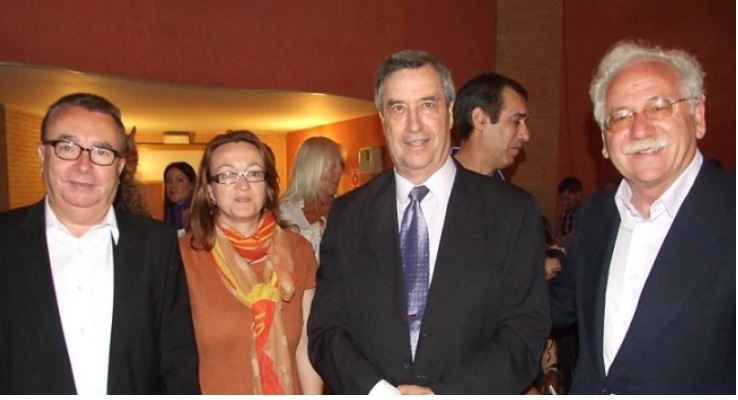 Auditorio Municipal ‘Maestro Padilla’, año 2013. Ambrosio Sánchez recibió el escudo de oro de la ciudad y el homenaje en la Gala del Deporte Escolar. En la fotografía de ‘La Voz de Almería’, aparece con el editor, José Luis Martínez (drcha) y con Pedro Manuel de la Cruz y Antonia Sánchez Villanueva, director y subdirectora del diario, respectivamente.