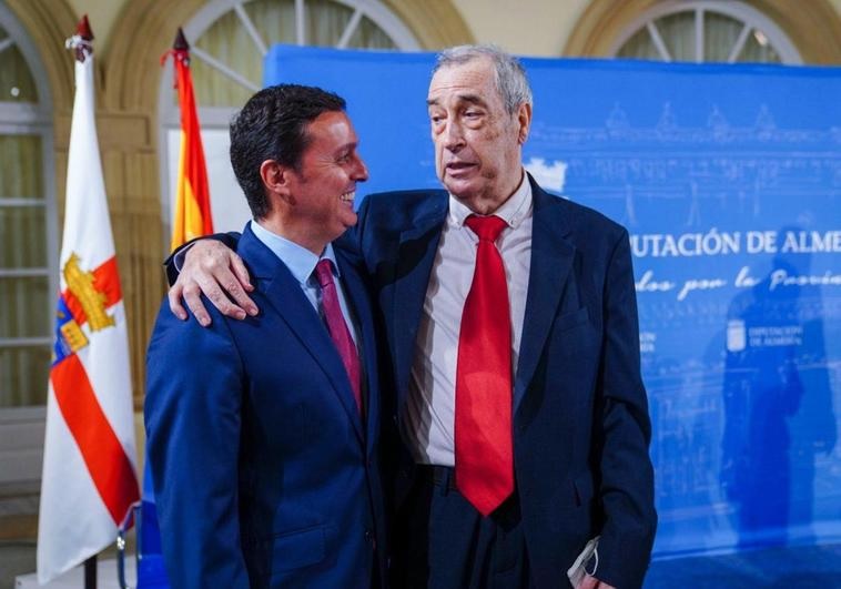 Ambrosio Sánchez (drcha) con Javier A. García, presidente de la Diputación, tras recibir el escudo de oro de la provincia, en septiembre de 2022.- Foto DIPUTACIÓN DE ALMERÍA.