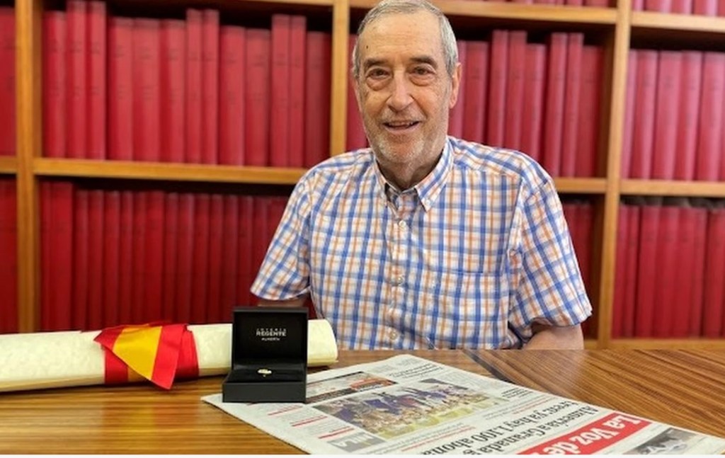 Ambrosio Sánchez, en la hemeroteca de ‘La Voz de Almería’, cuando recibió el escudo de oro de la ciudad.- Foto LA VOZ DE ALMERÍA.