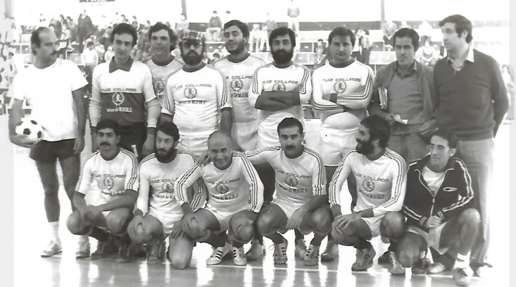Equipo de ‘Los plumillas’ de fútbol – sala que disputaron un partido amistoso a principios de la década de los 80. Ambrosio Sánchez (arriba a la drcha) era el entrenador del conjunto que integraban, entre otros, de izqda a drcha y de arriba abajo, Enrique Urrea, José María Granados, Antonio Hermosa, Miguel Ángel Blanco, Fernando Cortés, Miguel Sánchez, Sotero (delegado), Pepe González, Antonio Grijalba, Paco Torregrosa, Marcial, Antonio Torres y Carlos García. Todos pertenecientes a las plantillas de los diarios ‘La Voz de Almería’ e ‘Ideal’. El patrocinador fue Muebles Ruiz Collado y el marco, el Pabellón Municipal de Deportes, que acababa de inaugurarse.