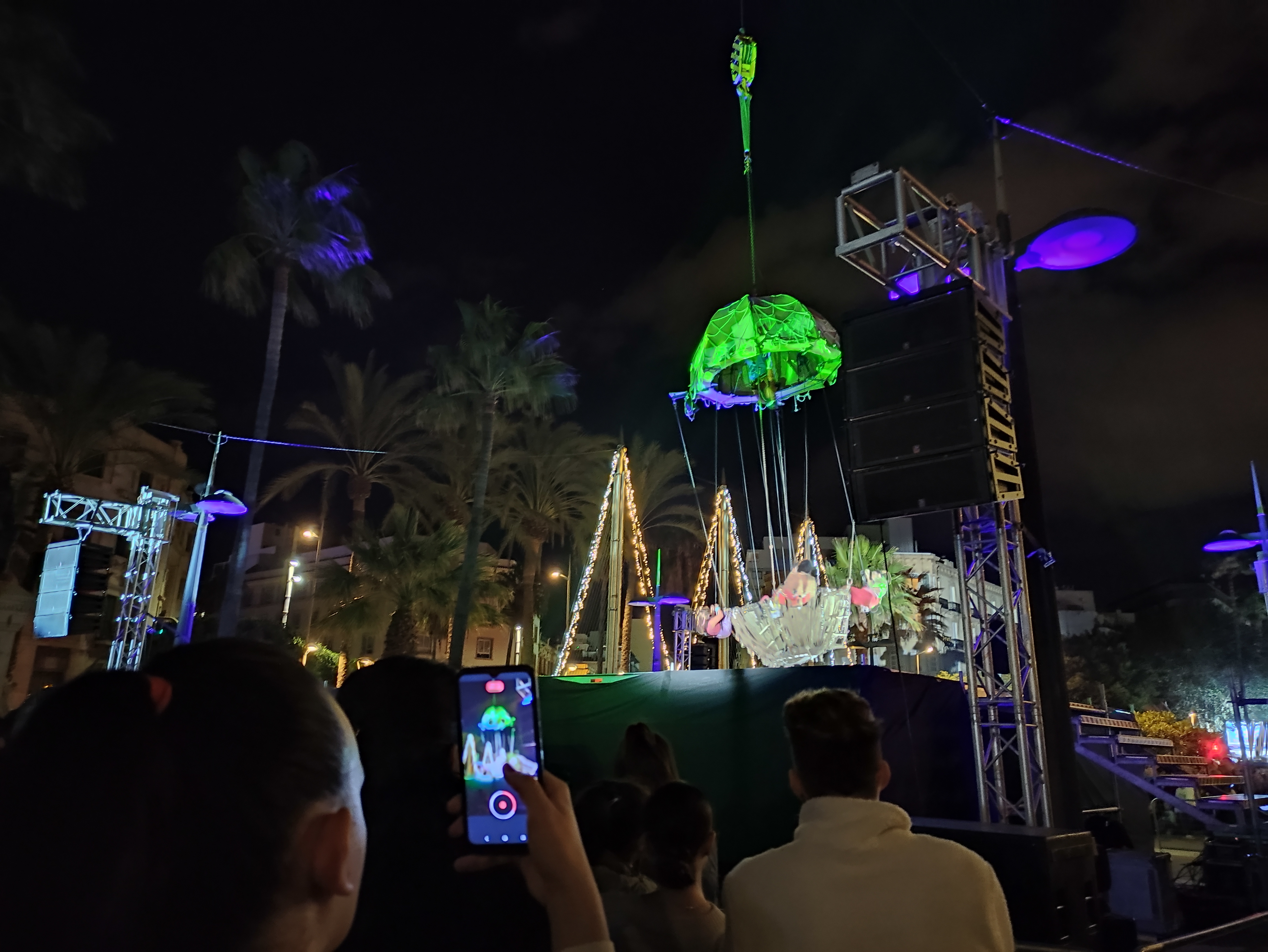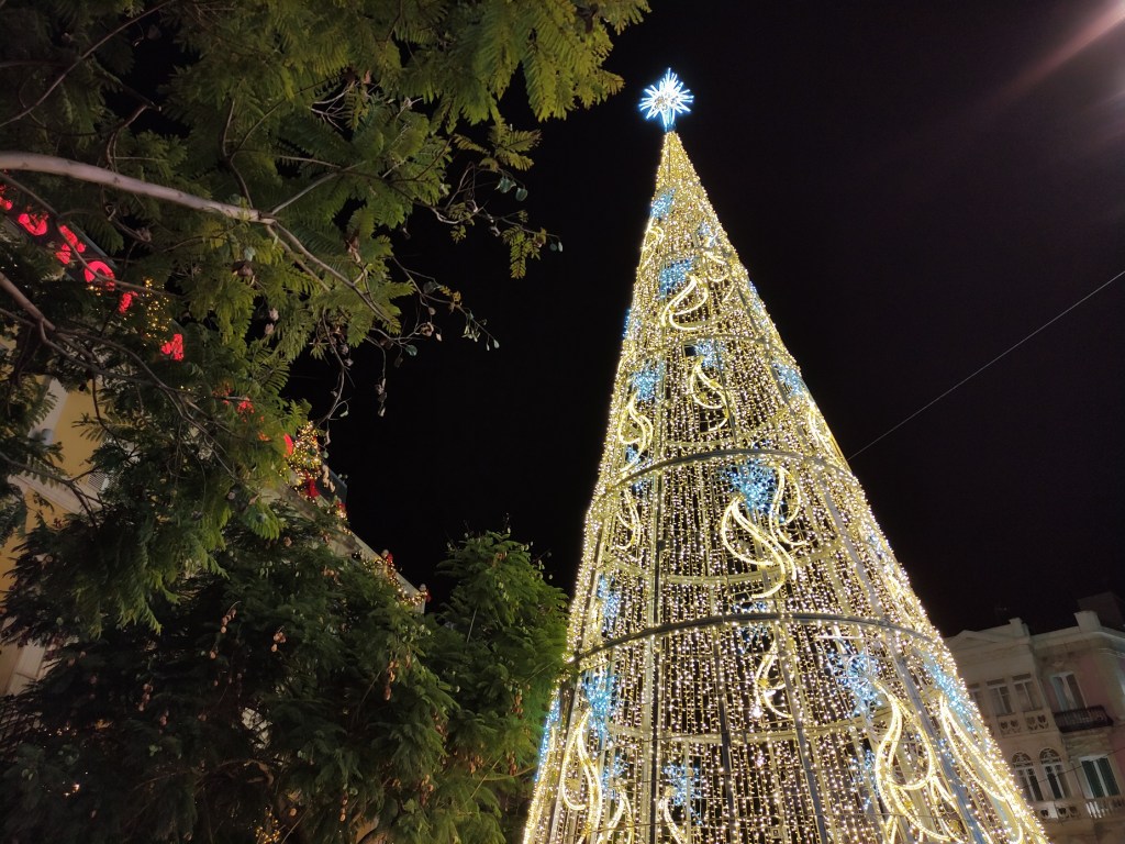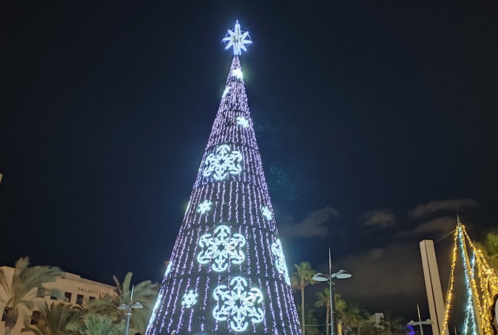 NOTA.- La fotografía destacada de portada corresponde al árbol navideño monumental, recién iluminado el 1 de diciembre de 2023, instalado en la Rambla, plaza de Las Velas. Da la bienvenida a la ciudad a quienes lleguen por vía marítima o por carretera. – Foto JOMARO