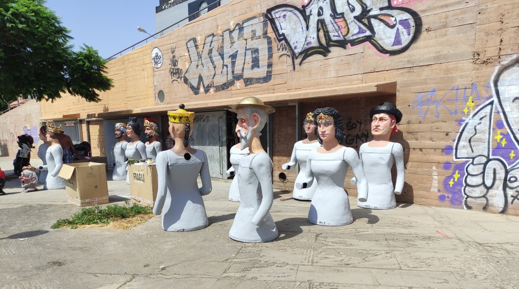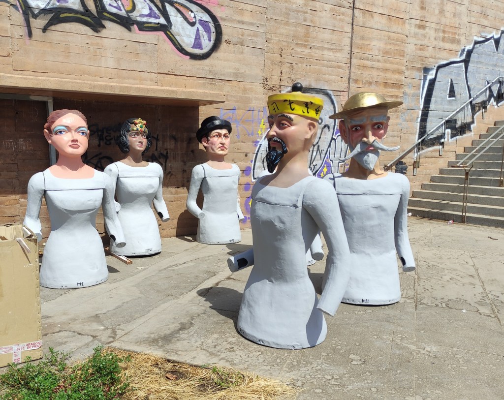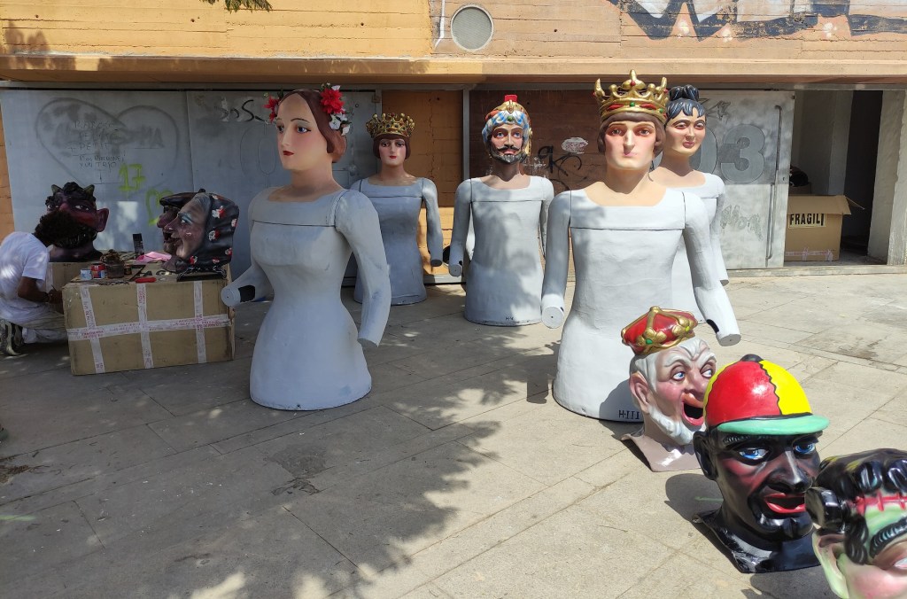 Gigantes, reparados y pintados, en pleno bulevar de la Rambla de Iniesta, para ser centro de desfiles durante la feria. Los Gigantes y Cabezudos tienen una tradición centenaria, desde principios del siglo XX.- Foto JOMARO