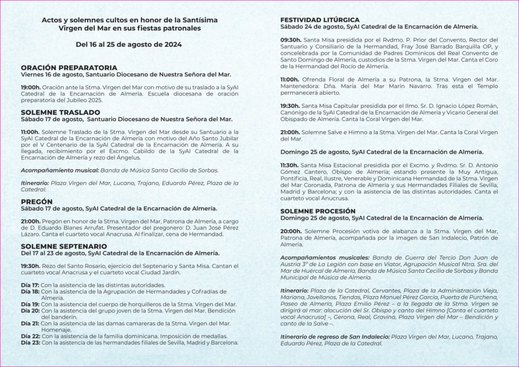 Programa oficial de la Feria y Fiestas de Almería 2024, en honor a la Virgen del Mar