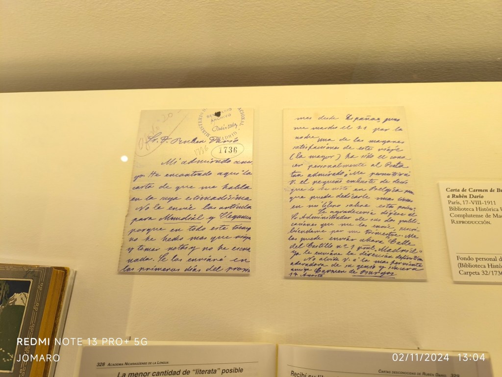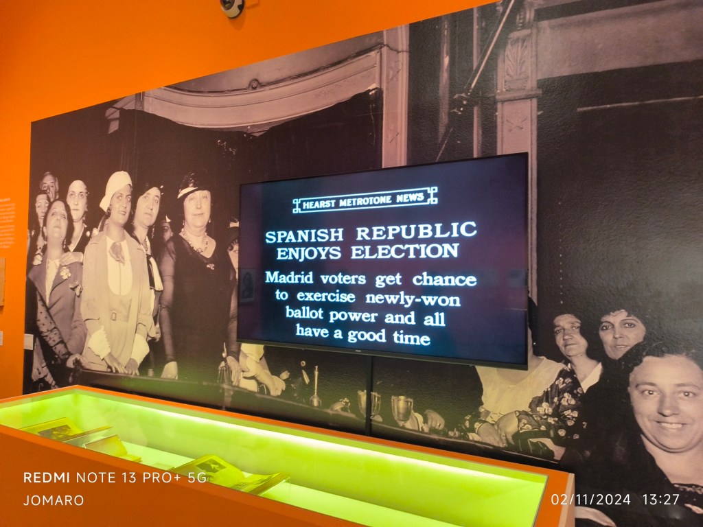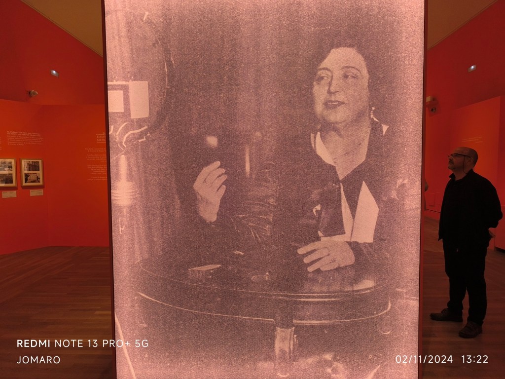El trabajo de Concepción Núñez le ha llevado a viajar, a indagar, a investigar y a encontrar documentos inéditos. Así ocurrió tres semanas antes de inaugurarse la exposición, a través de una difusión en la red social “X” (antes Twitter), cuando apareció un fragmento de un audiovisual emitido en un noticiero estadounidense y que se encuentra en un archivo de la Universidad de California (UCLA), probablemente el final de una entrevista, en el que Colombine proclama: “¡Viva la República!” (enlace con ‘X‘ para ver el film). La cinta cierra la presentación, mientras la voz de Carmen de Burgos se repite de fondo, una y otra vez, en la sala de la BNE. Un hecho emotivo, puesto que no existía con anterioridad ningún testimonio sonoro, ni filmado de la periodista.