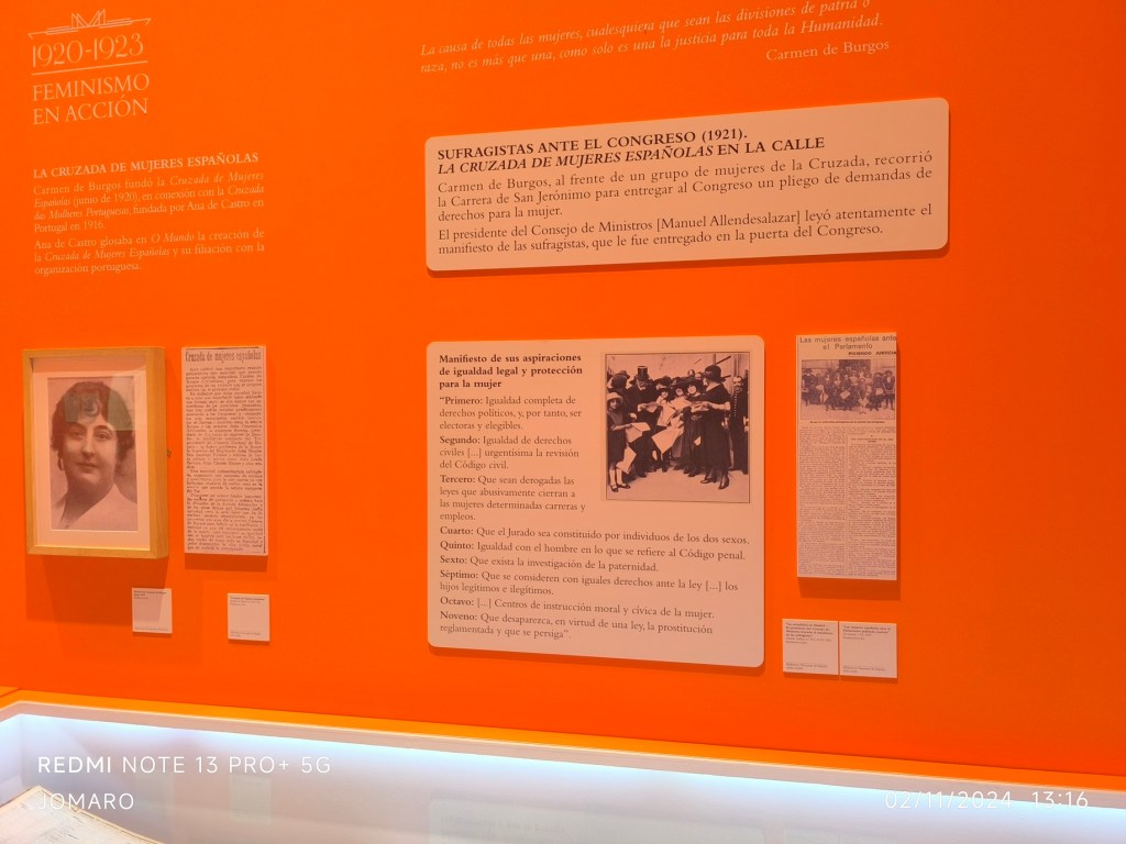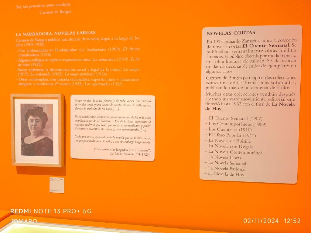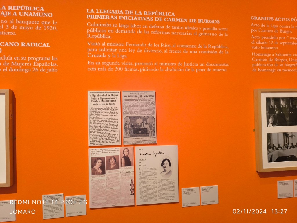 NOTA.- La fotografía destacada de portada corresponde al primer mural ilustrativo de la exposición ‘Carmen de Burgos, Colombine (1867 – 1932). La modernización de España‘, que presenta la Biblioteca Nacional de España (BNE), con un notable éxito de público y de elogios.- Foto JOMARO.